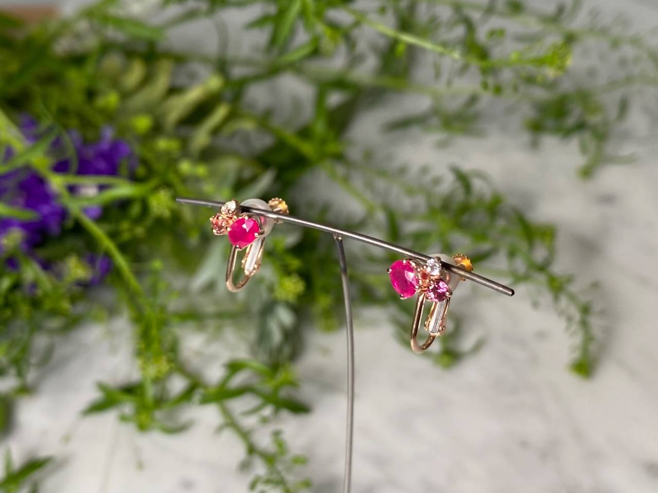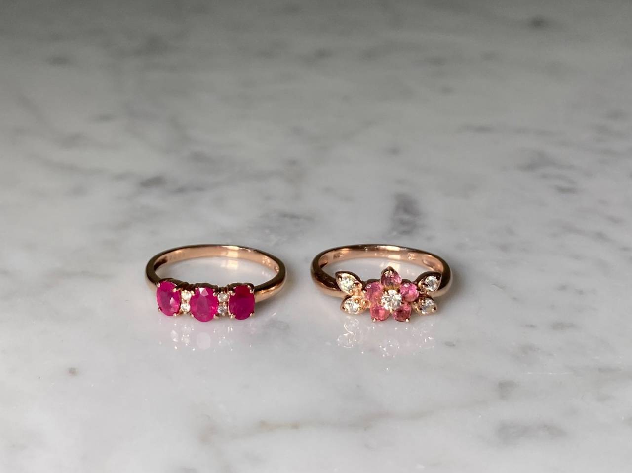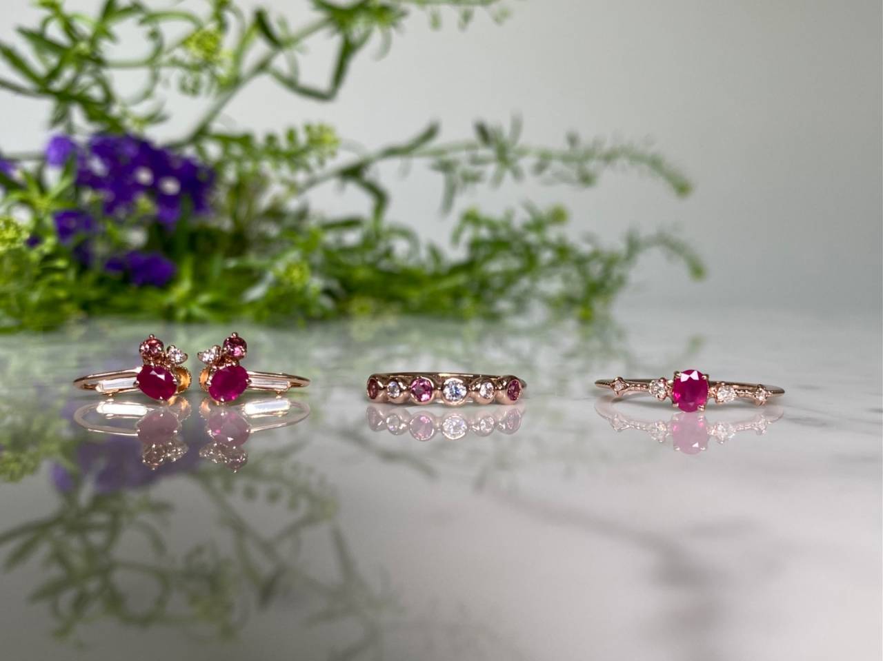 リフォームジュエリー 2025/04/22 リング、イヤリング K10ピンクゴールド ルビー ダイヤモンド (after 写真1〜4 before 写真5) 指輪2点のリフォームです。 ✴︎[写真2] 覆輪留めでシンプルに仕上げたピンキーリング。 高さを抑え、丸みのあるアームで普段使いしやすい作品です。 ✴︎[写真3] ルビーにダイヤモンドを合わせたシャープな印象のリング。 ミル打ちされたアームはより繊細でスッキリとした仕上がりです。 ✴︎[写真4] リングに合わせて、3色の石をバランスよく配置したイヤリング。 リングとセットでお楽しみいただけます。 ご注文誠にありがとうございました。