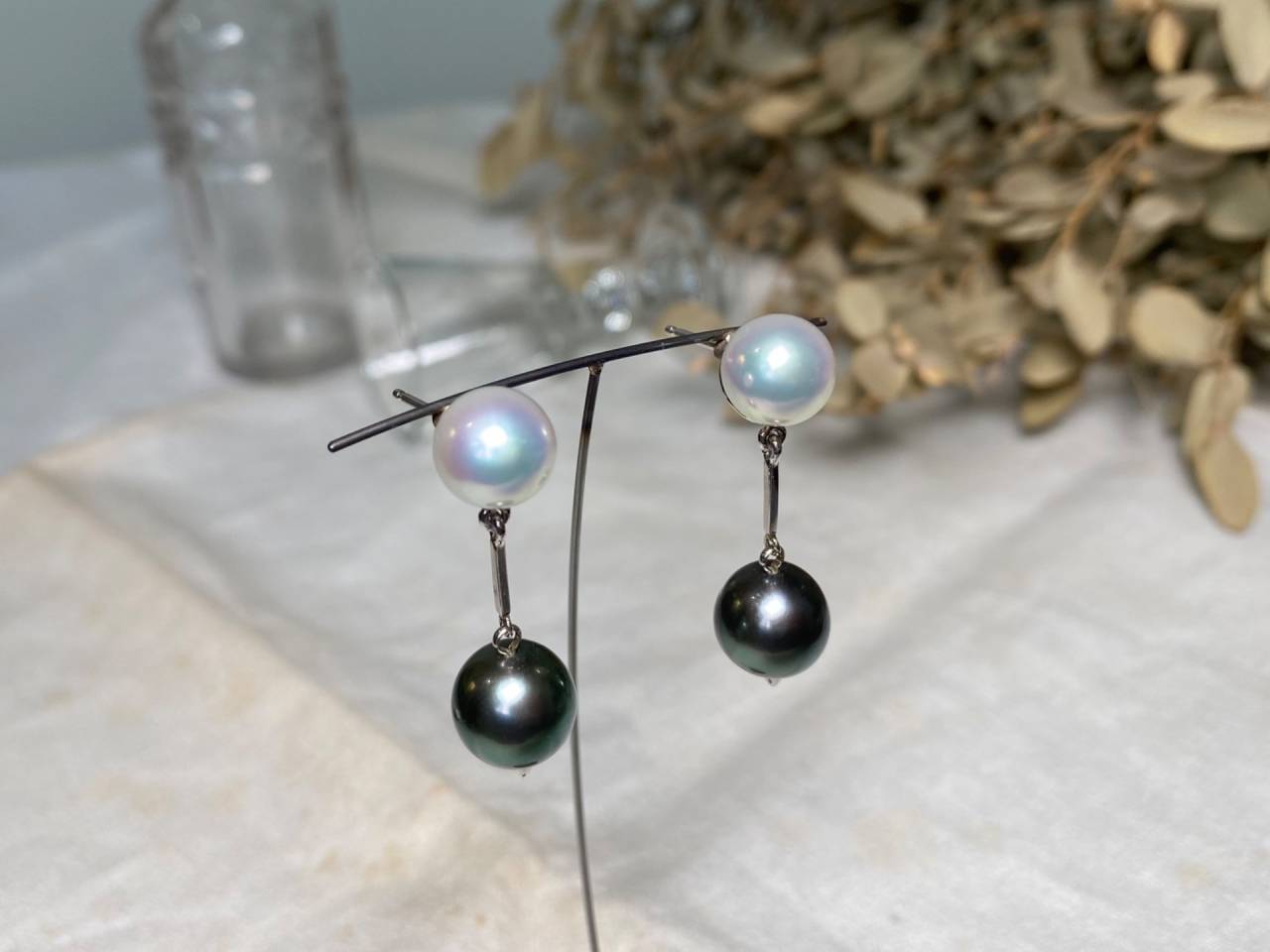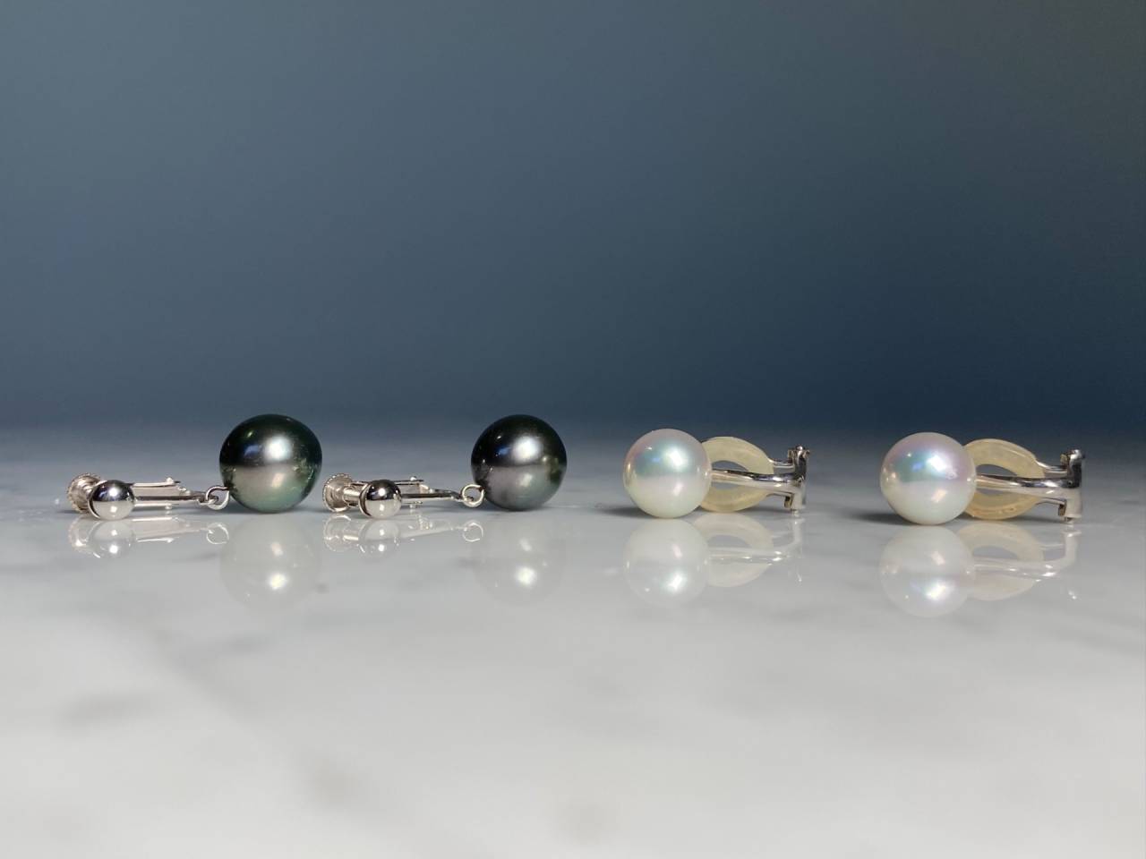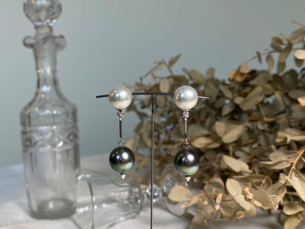 リフォームジュエリー 2025/05/02 パールピアス K14WG 白蝶真珠 黒蝶真珠 (after 写真1、2 before 写真3) イヤリングからピアスへのリフォームです。 真珠を4面カットのバーで繋ぎ、さりげない輝きをプラスしました。 テリの良いモノトーンカラーの真珠が耳元で揺れ動く、上品な印象の作品です。 ご注文誠にありがとうございました。