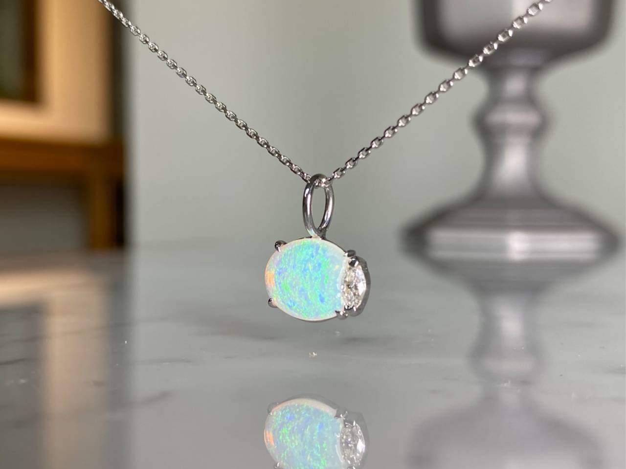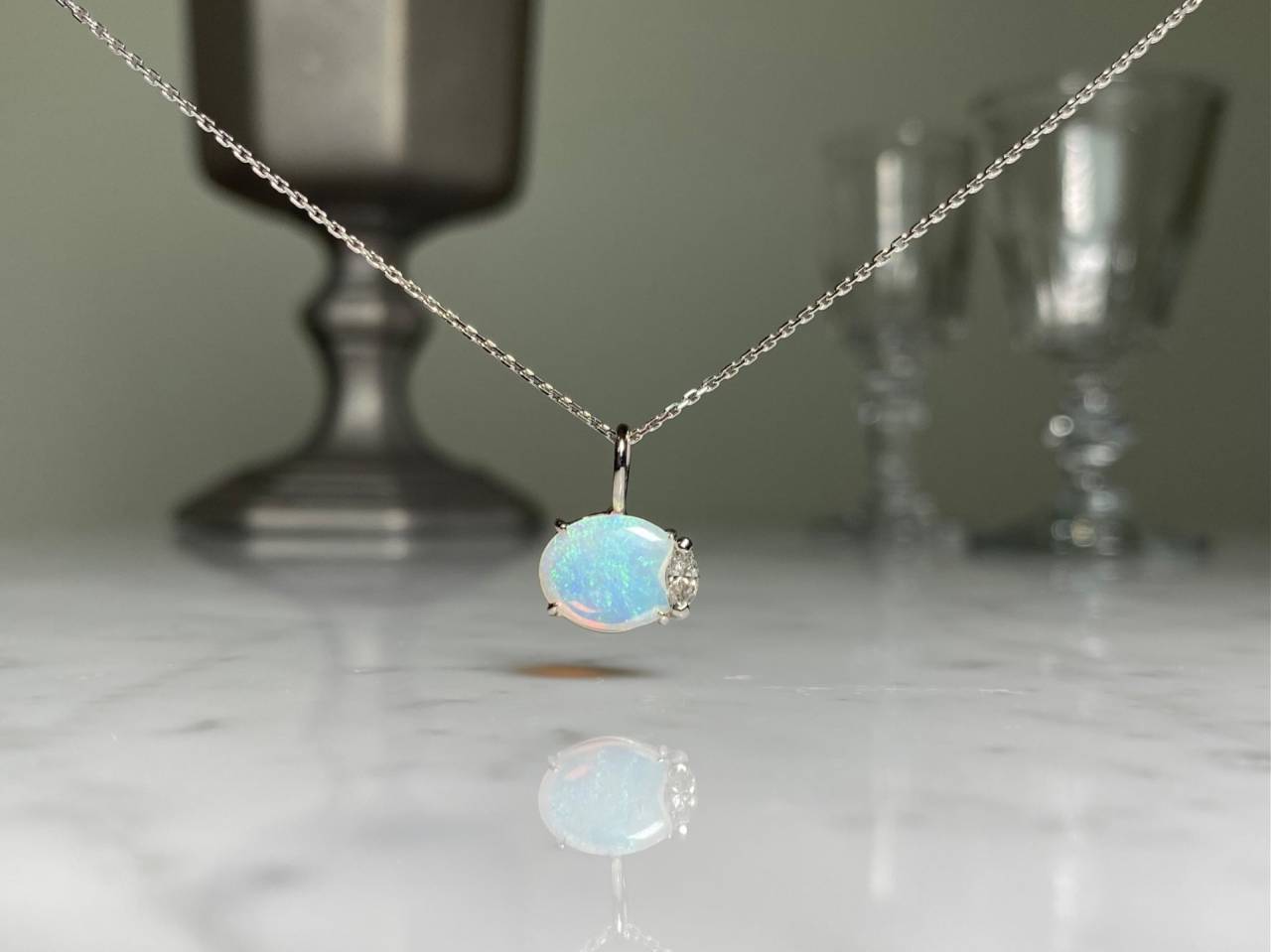 リフォームジュエリー 2025/05/13 オパールペンダントトップ Pt900 オパール ダイヤモンド (after 写真1、2 before 写真3) オパールの指輪と、お持ち込みいただいたダイヤモンドを使用してペンダントトップを作製しました。 オパールの欠けていた部分を補うように、マーキスダイヤをセットしました。 オパールのゆらめきの中にダイヤモンドが輝く作品に仕上がりました。 ご注文誠にありがとうございました。