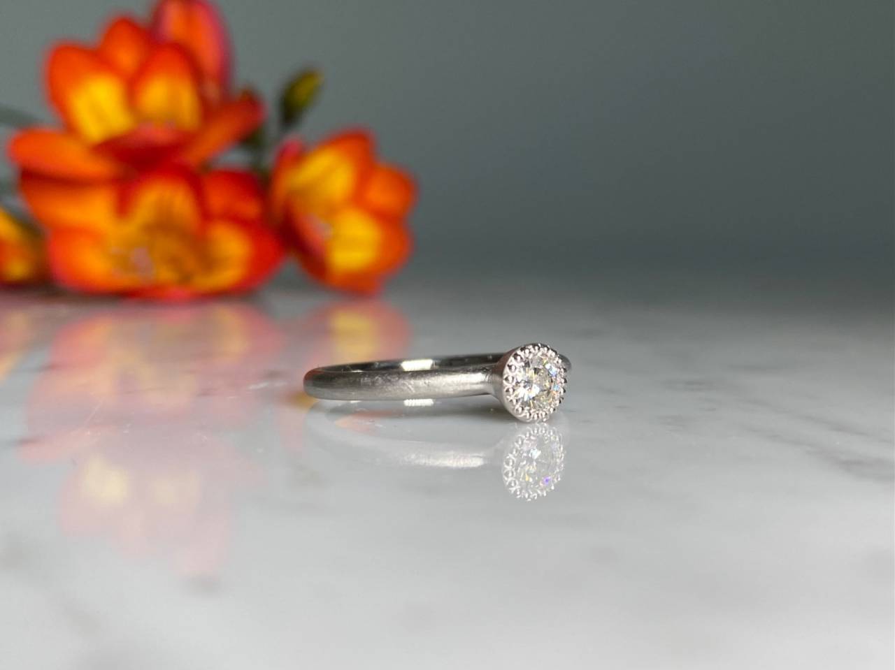 リフォームジュエリー 2025/06/11 ダイヤモンドring Pt900 ダイヤモンド (after 写真1、2 before 写真3) ペンダントトップから指輪へのリフォームです。 ダイヤモンドをミルセッティングし、艶消し加工を施して重厚感を出しました。 引っかかりがなく、普段使いしやすい作品です。 ご注文誠にありがとうございました。