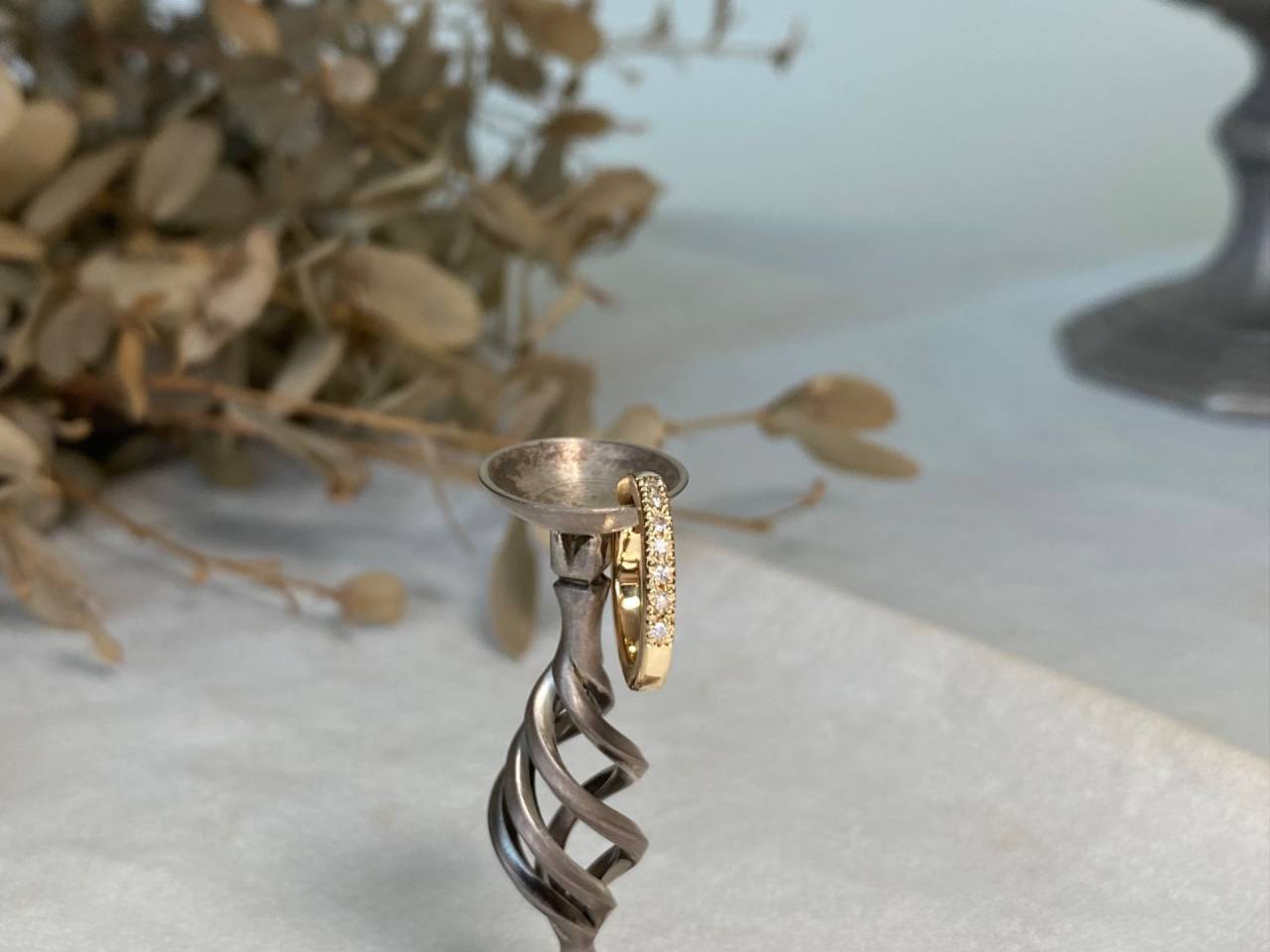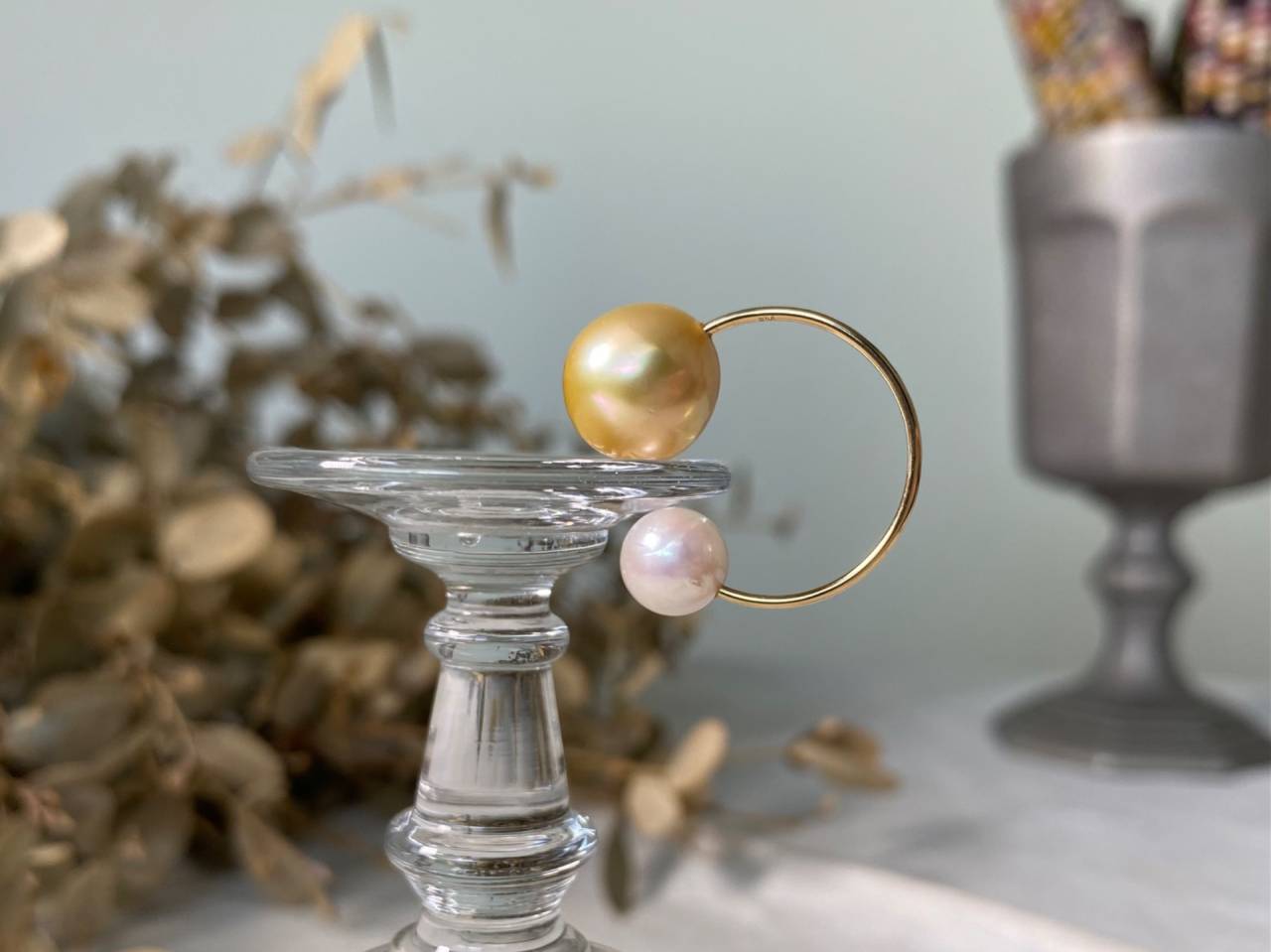 リフォームジュエリー 2025/06/24 イヤーカフ K18YG 南洋ゴールドパール あこや真珠 ダイヤモンド (after 写真1〜3 before 写真4) 指輪からイヤーカフ2点へのリフォームです。 [写真2] テリの良いゴールドパールとあこや真珠が魅力的なイヤーカフ。 真珠を引き立てるシンプルなデザインで、着け心地の良い作品です。 [写真3] ミルセッティングされたダイヤモンドが上品に輝き、重ね付けもしやすい作品です。 ご注文誠にありがとうございました。