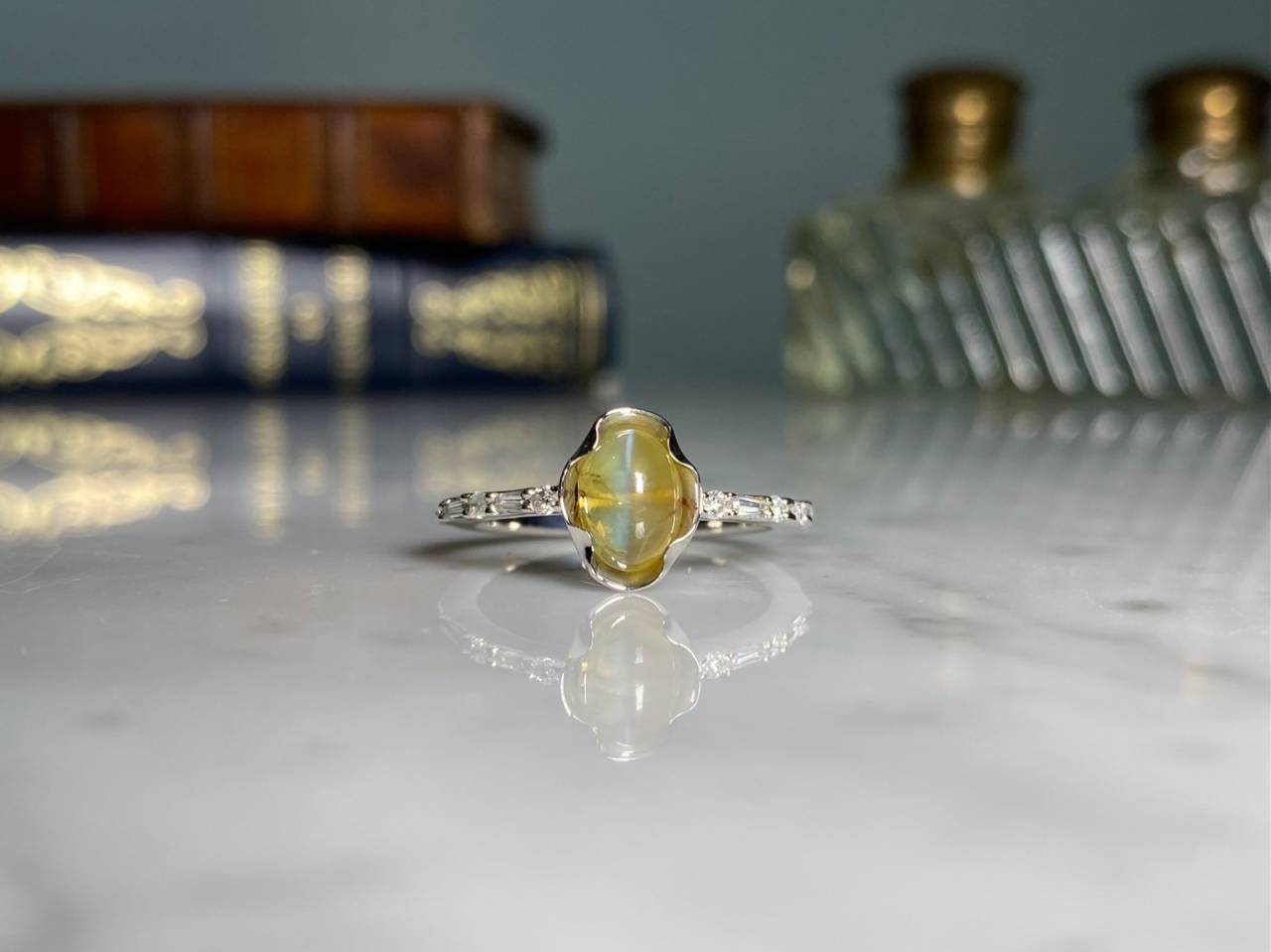 リフォームジュエリー 2025/10/08 指輪、イヤーカフ Pt900 K18YG クリソベリルキャッツアイ ダイヤモンド 真珠 (after写真1〜5 before 写真6) お持ち込みいただいた素材を使用して、指輪とイヤーカフを作製しました。 ✴︎クリソベリルキャッツアイring しなやかなカーブを描いた枠にクリソベリルキャッツアイをセットし、アームにはメレダイヤとテーパーダイヤがバランスよく配置された、華やかな印象の作品。 ✴︎イヤーカフ お選びいただいたあこや真珠と、残りの素材を合わせてイヤーカフを作製しました。 シンプルでつけ心地の良い作品です。 ご注文誠にありがとうございました。