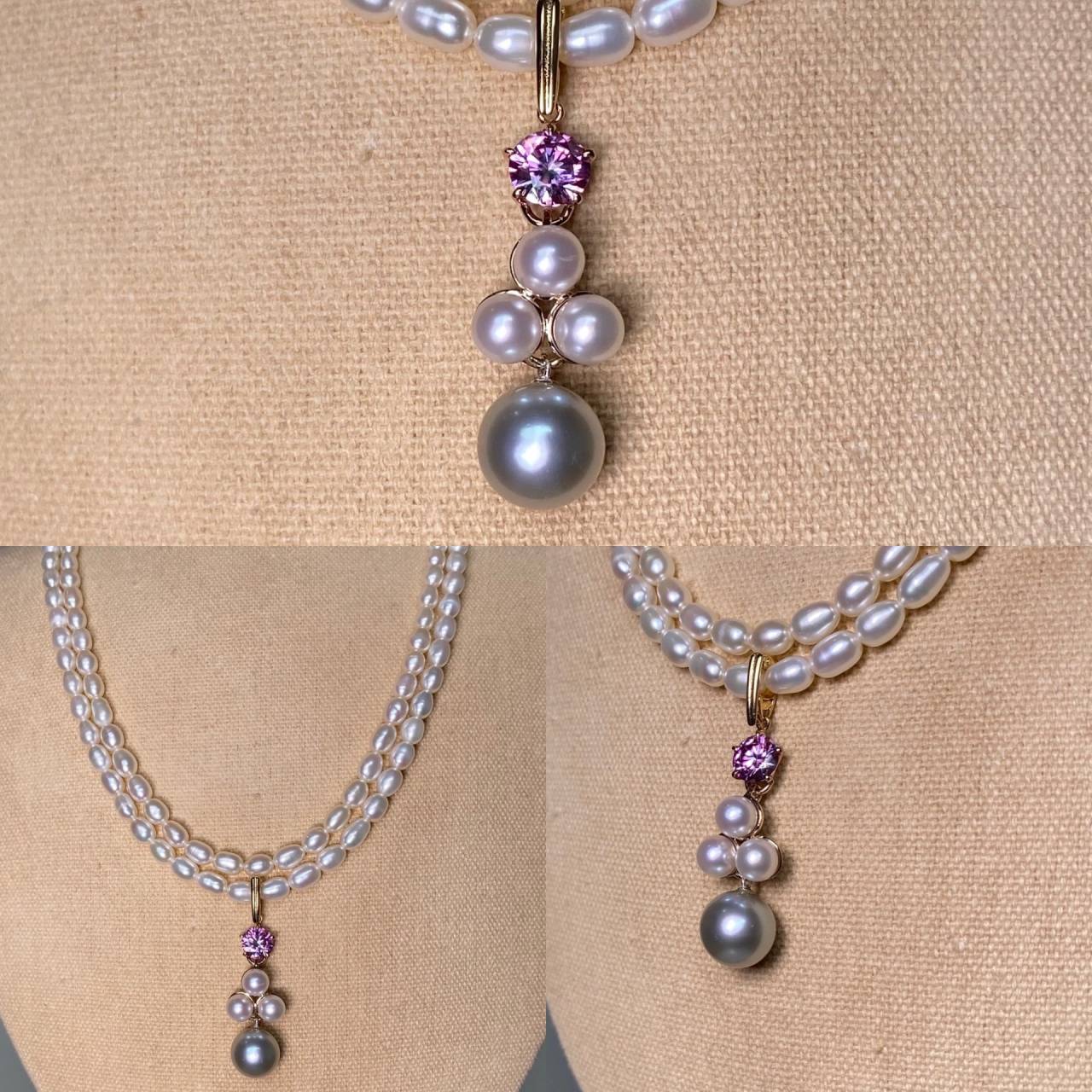 オーダージュエリー 2025/11/05 ペンダントトップ お持ち込みの素材を組み合わせて、ペンダントトップを2点作製しました。 クリッカーパーツ仕様なので、チェーンにも真珠のネックレスにも合わせられる作品です。 ご注文誠にありがとうございました。