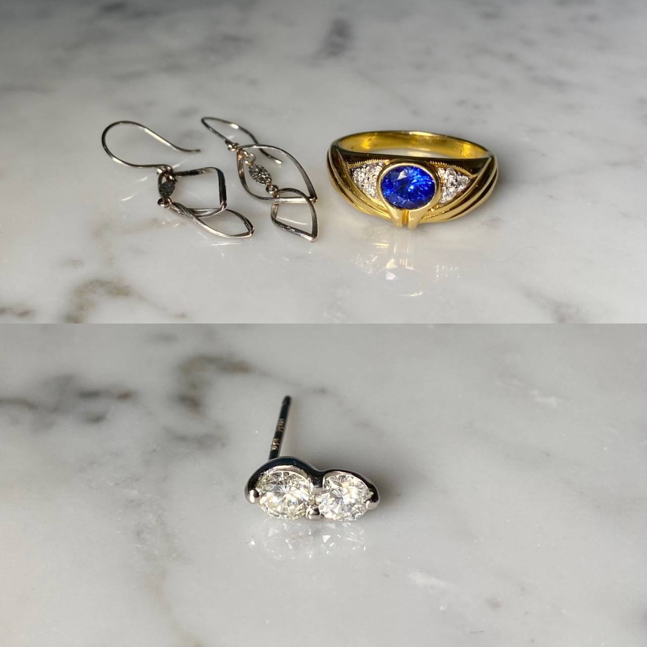 リフォームジュエリー 2026/03/10 指輪、ペンダントトップ Pt900 K18YG サファイア ダイヤモンド (after 写真1〜4、before 写真5) お持ち込みの素材を使用して、指輪とペンダントトップを作製しました。 指輪は普段使いしやすいシンプルなデザインへ。 ミルセッティングでセットされたサファイアの輝きが魅力的な、K18 YGと Pt900のコンビリングです。 ペンダントトップは、元のピアスを生かしたデザインで仕上げました。 ご注文誠にありがとうざいました。