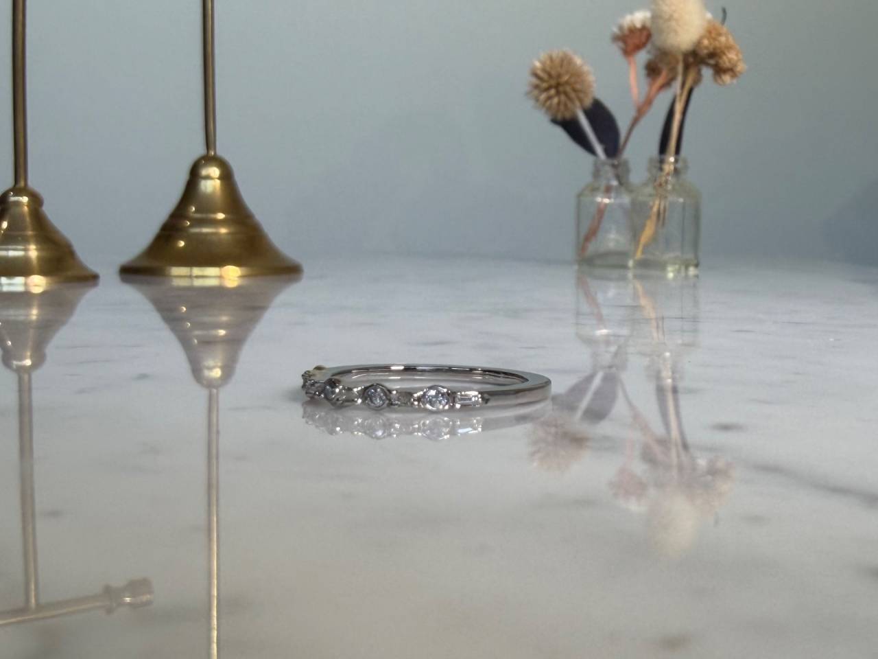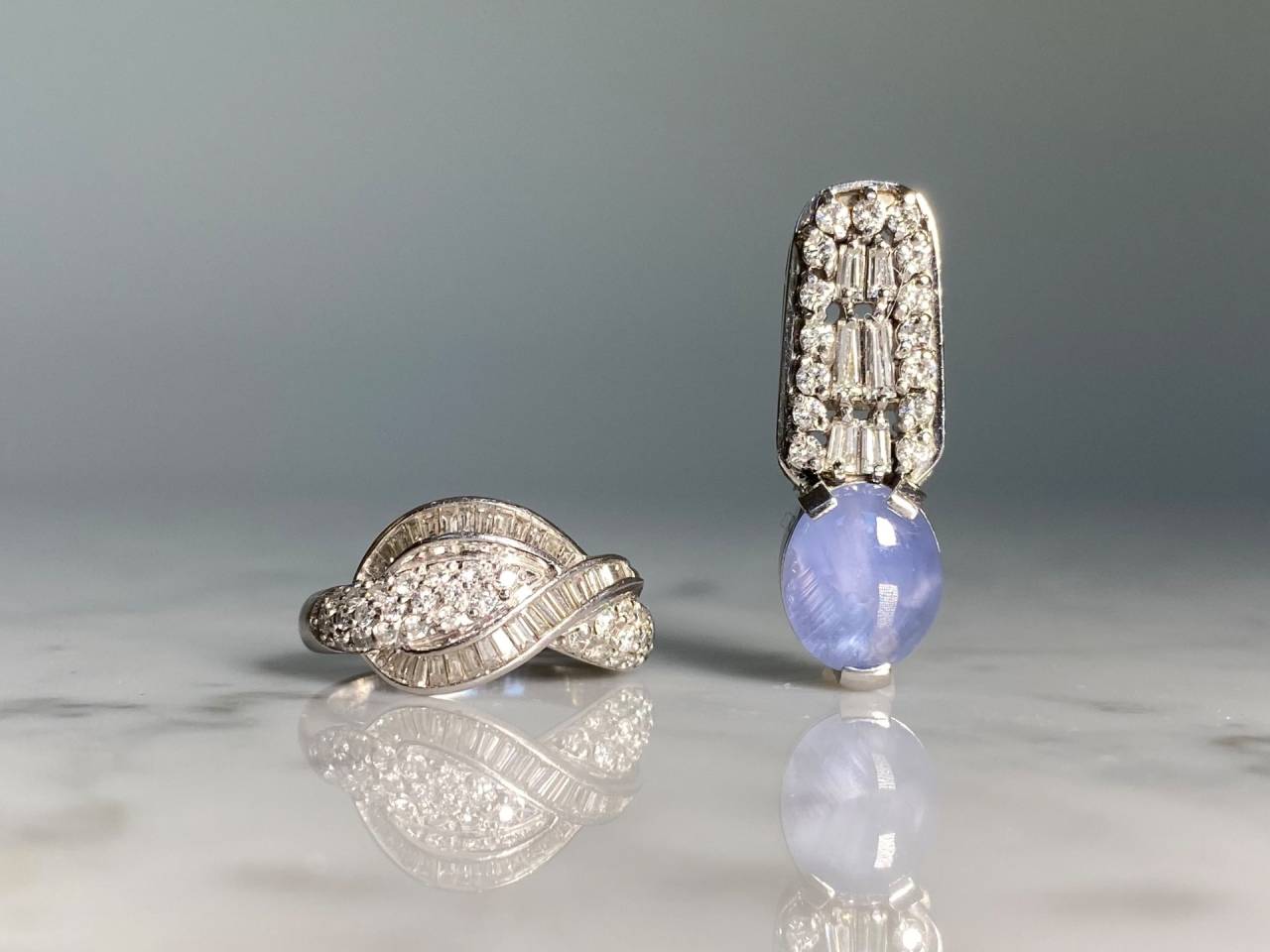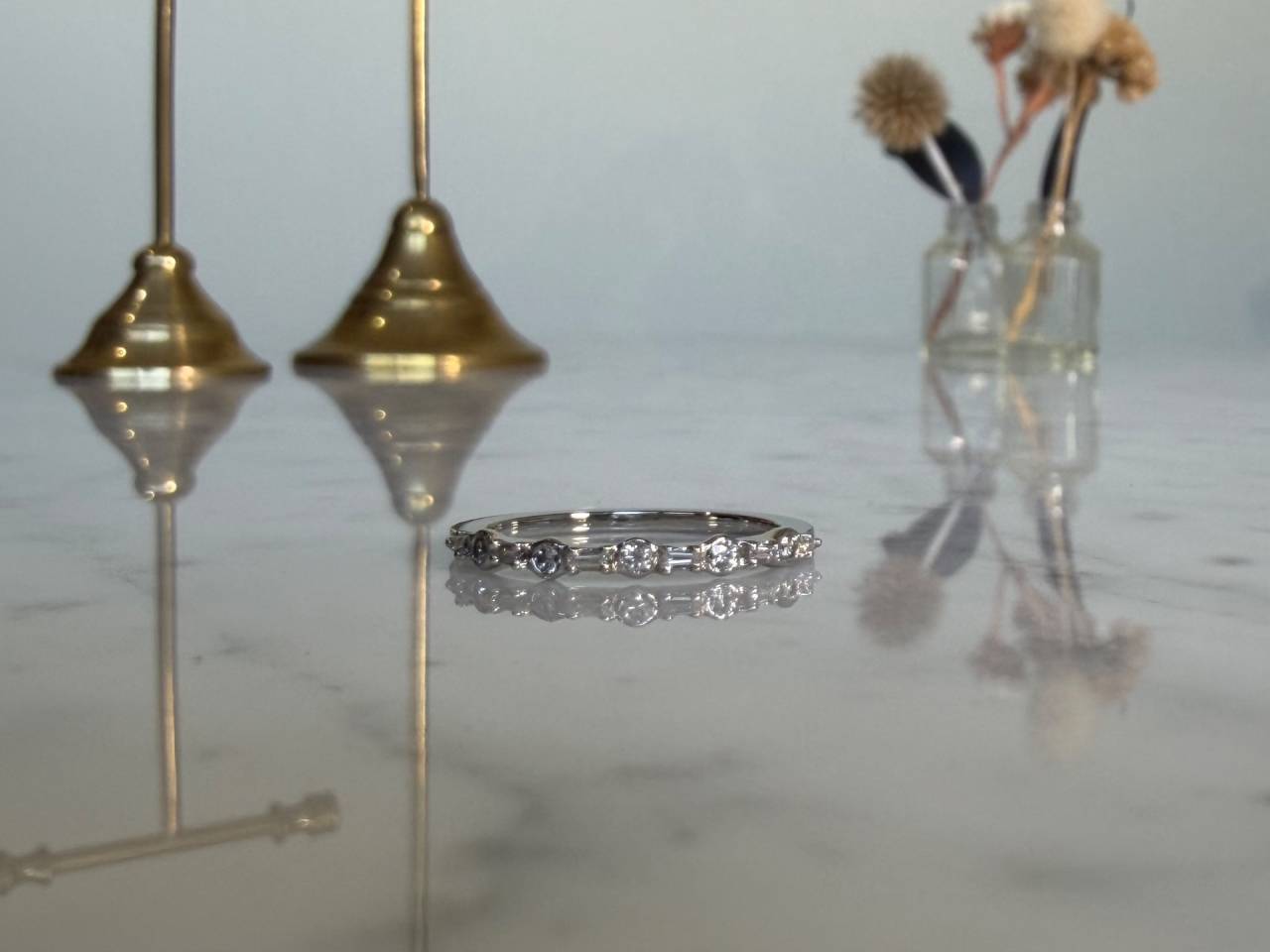 リフォームジュエリー 2026/03/18 Pt900スターサファイアリング Pt900 ダイヤモンドリング Pt900 スターサファイア ダイヤモンド (after 写真1〜5 before 写真6) お持ち込みの素材を使用して指輪2点を作製しました。 スターサファイアはミルセッティングし、両サイドにダイヤモンドの輝きをプラスしました。 繊細な線を毛がいた荒らし加工で仕上げた作品です。 ラウンドダイヤモンドとテーパーダイヤを交互にセットした一文字リング。 シーンを問わずにお楽しみいただける作品です。 ご注文誠にありがとうございました。